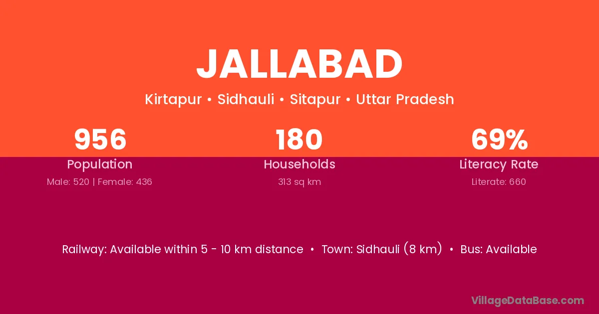 Jallabad village has a total population of 490 people, of which 246 are males and 244 are females.