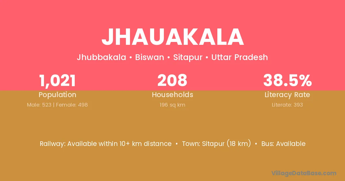 Jhauakala village has a total population of 1,021 people, of which 523 are males and 498 are females.