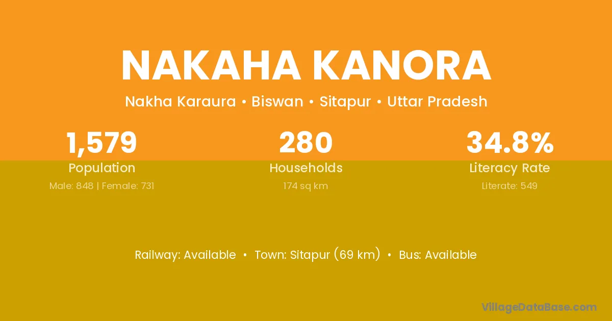 Sitapur (69 km) is the nearest town to Nakaha Kanora village for major economic activities and is located approximately 69 km away.