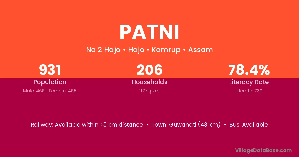 Sitapur (15 km) is the nearest town to Patni village for major economic activities and is located approximately 15 km away.
