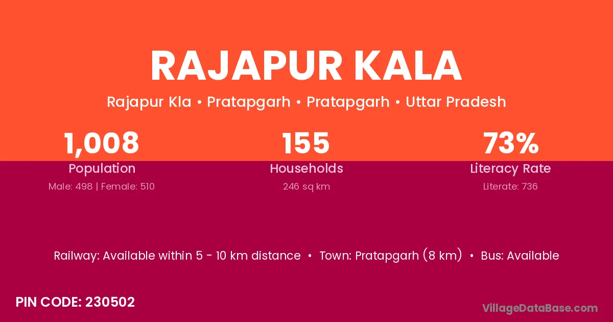 Rajapur Kala village has a total population of 4,060 people, of which 2,187 are males and 1,873 are females.