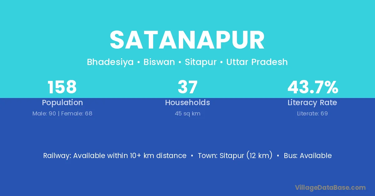 Sitapur (12 km) is the nearest town to Satanapur village for major economic activities and is located approximately 12 km away.