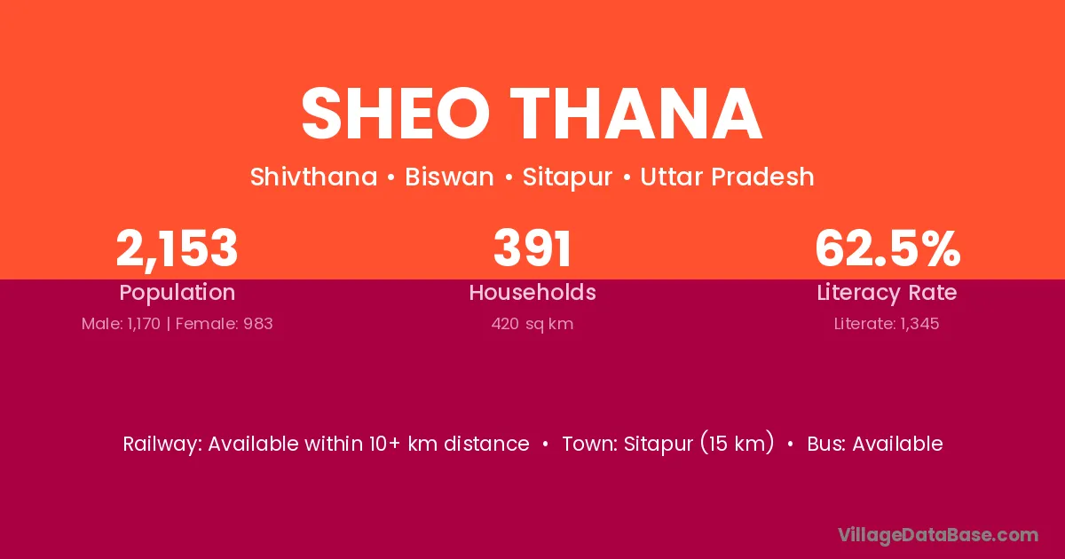 Sitapur (15 km) is the nearest town to Sheo Thana village for major economic activities and is located approximately 15 km away.