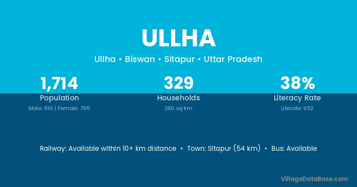 Sitapur (54 km) is the nearest town to Ullha village for major economic activities and is located approximately 54 km away.