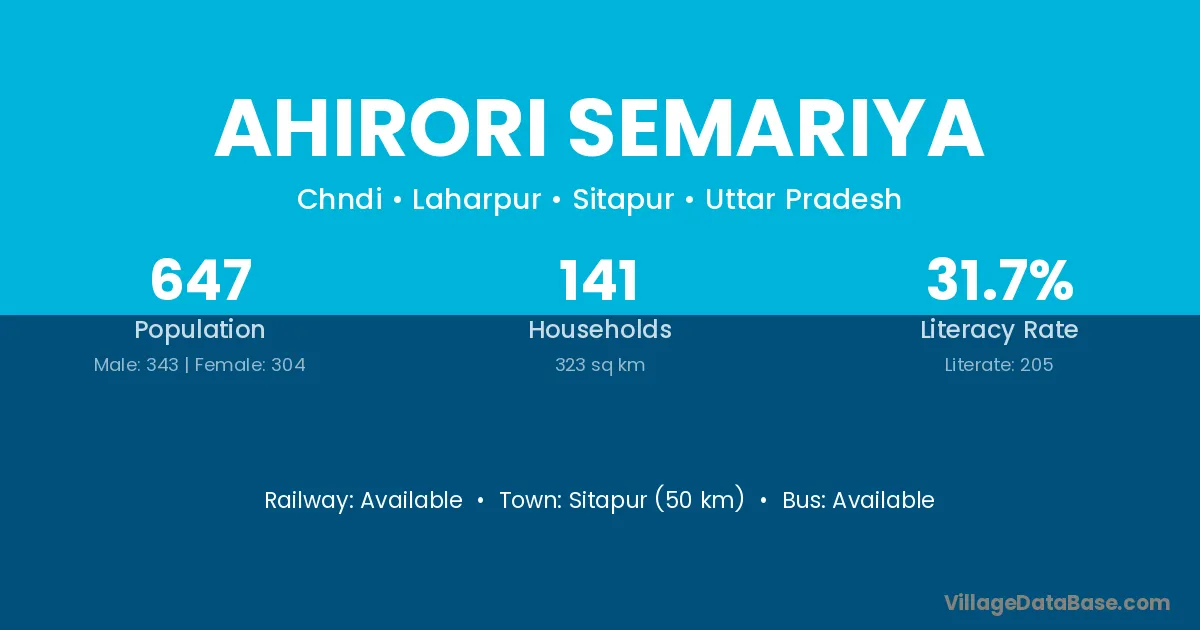 Ahirori Semariya village has a total population of 647 people, of which 343 are males and 304 are females.