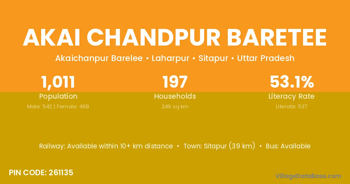 Akai Chandpur Baretee village has a total population of 1,011 people, of which 542 are males and 469 are females.