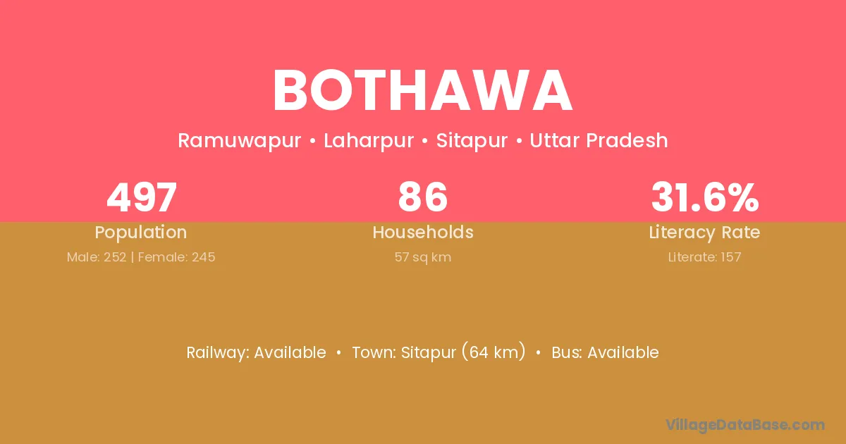 Bothawa village has a total population of 497 people, of which 252 are males and 245 are females.