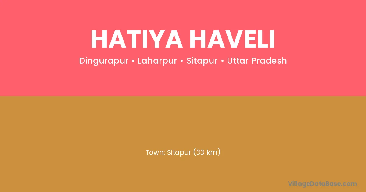 Sitapur (33 km) is the nearest town to Hatiya Haveli village for major economic activities and is located approximately 33 km away.