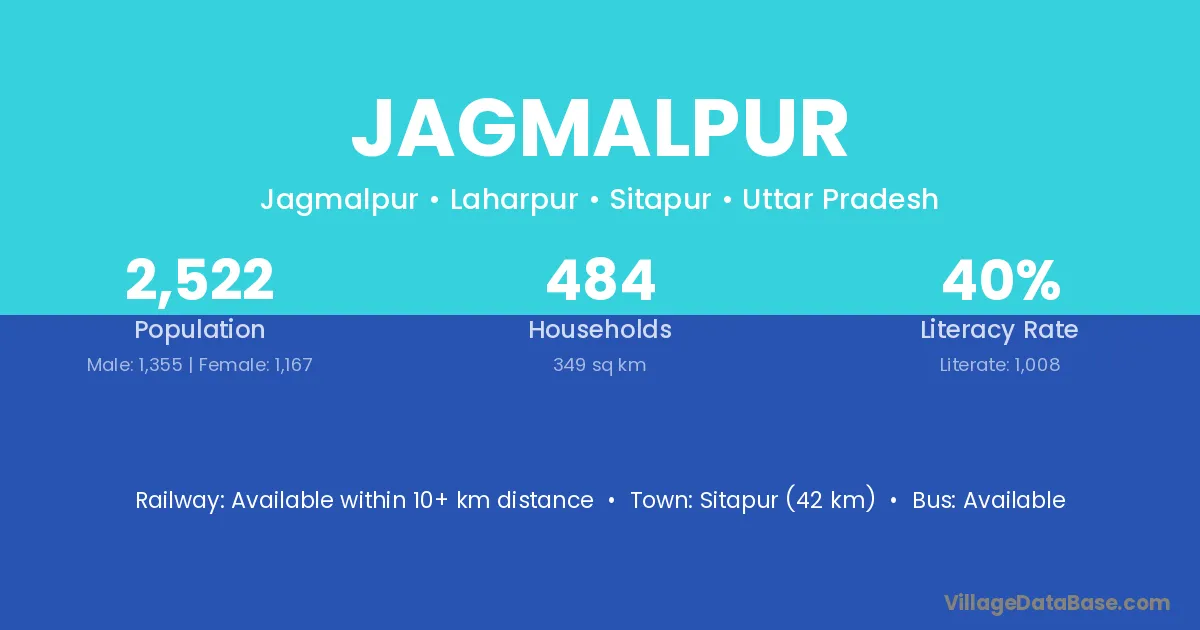 Sitapur (42 km) is the nearest town to Jagmalpur village for major economic activities and is located approximately 42 km away.