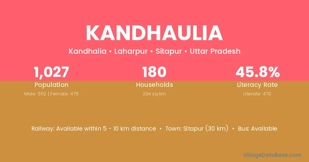 Sitapur (30 km) is the nearest town to Kandhaulia village for major economic activities and is located approximately 30 km away.