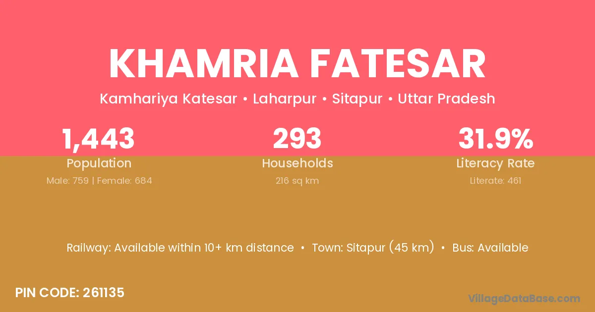 According to Census 2011 information, the village code of Khamria Fatesar village is 261135.