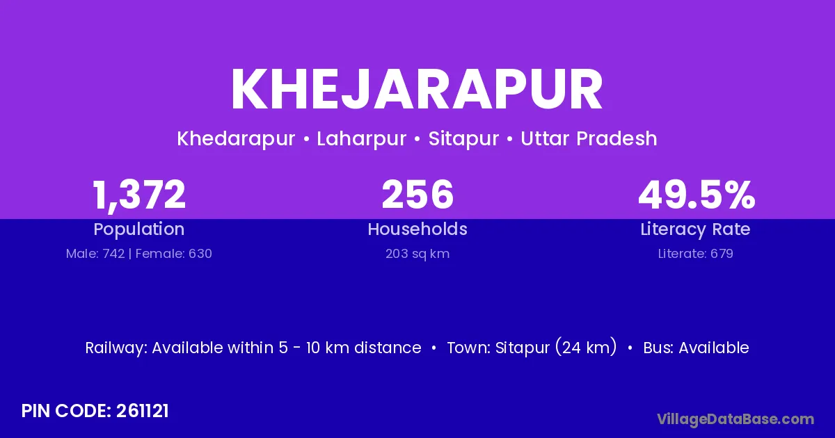Sitapur (24 km) is the nearest town to Khejarapur village for major economic activities and is located approximately 24 km away.