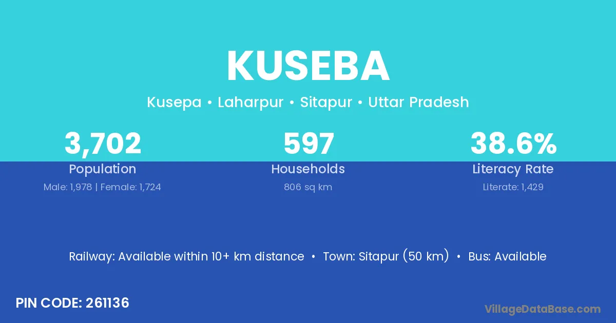 Sitapur (50 km) is the nearest town to Kuseba village for major economic activities and is located approximately 50 km away.