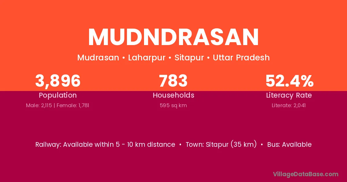 Sitapur (35 km) is the nearest town to Mudndrasan village for major economic activities and is located approximately 35 km away.