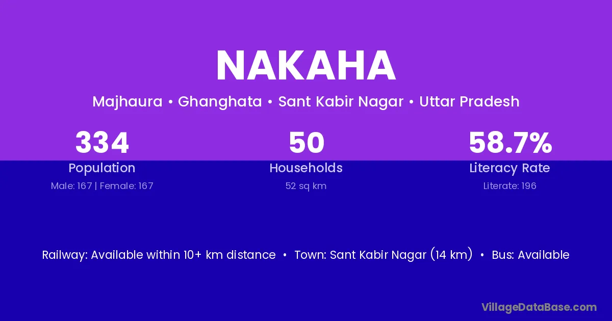 Sitapur (56 km) is the nearest town to Nakaha village for major economic activities and is located approximately 56 km away.