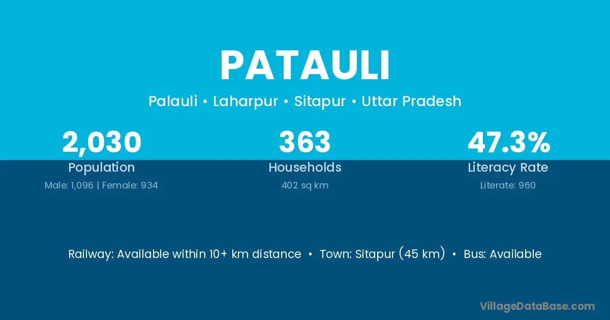Sitapur (45 km) is the nearest town to Patauli village for major economic activities and is located approximately 45 km away.
