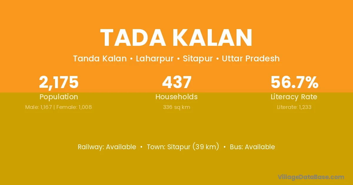 Sitapur (39 km) is the nearest town to Tada Kalan village for major economic activities and is located approximately 39 km away.