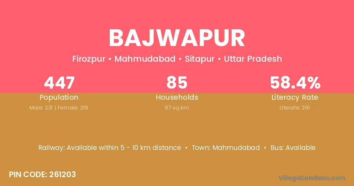 Bajwapur village has a total population of 447 people, of which 231 are males and 216 are females.