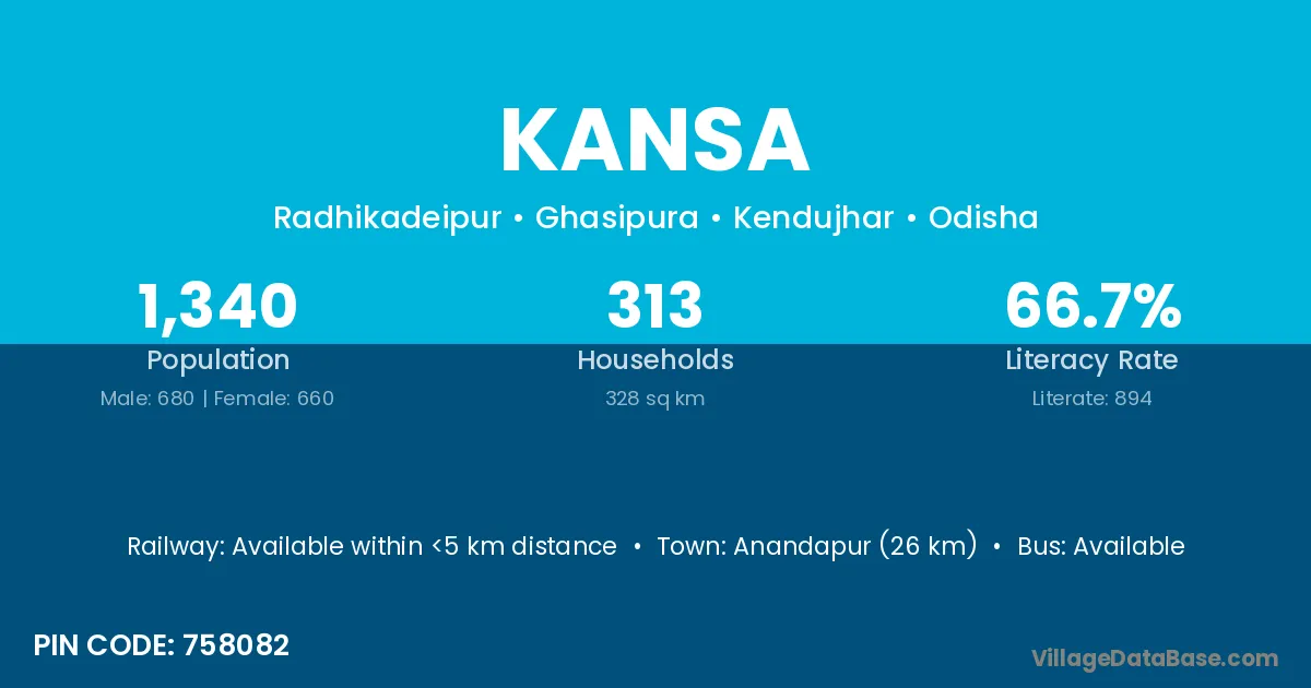 The literacy rate of Kansa village is 63.84%. Male literacy stands at 71.45% and female literacy at 55.84%.