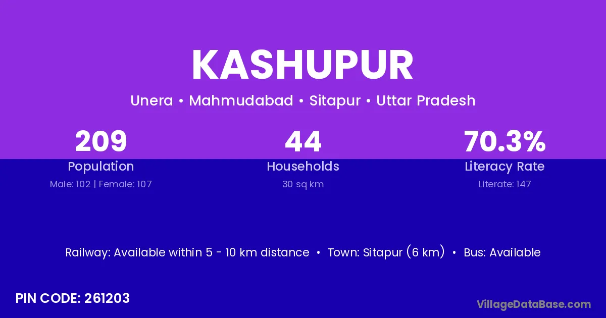 Sitapur (6 km) is the nearest town to Kashupur village for major economic activities and is located approximately 6 km away.