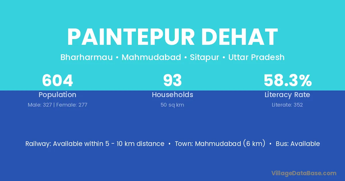 Mahmudabad (6 km) is the nearest town to Paintepur Dehat village for major economic activities and is located approximately 6 km away.