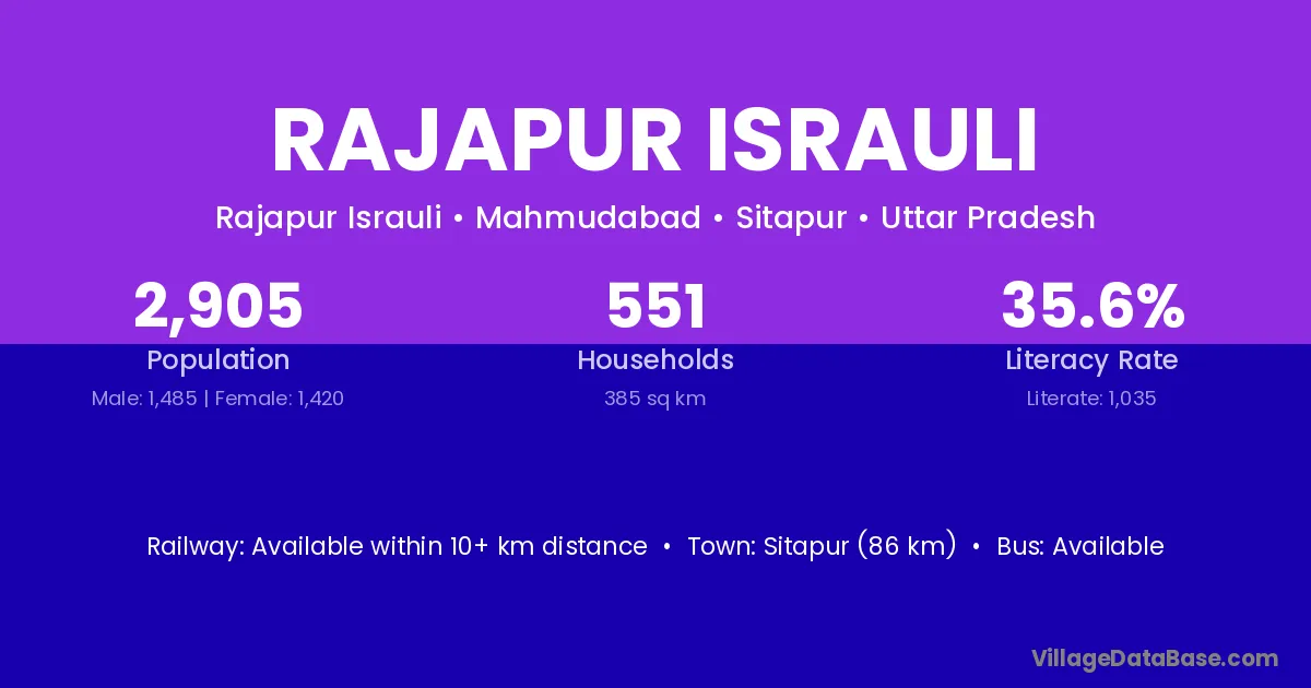 Rajapur Israuli village has a total population of 2,905 people, of which 1,485 are males and 1,420 are females.