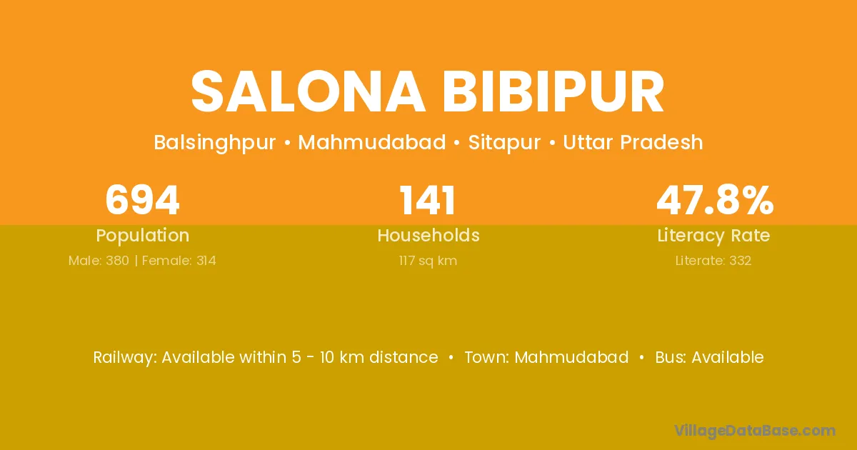 Salona Bibipur village has a total population of 694 people, of which 380 are males and 314 are females.