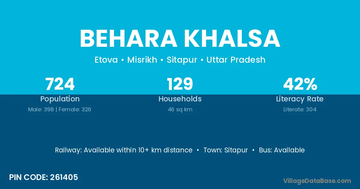 Sitapur is the nearest town to Behara Khalsa village for major economic activities