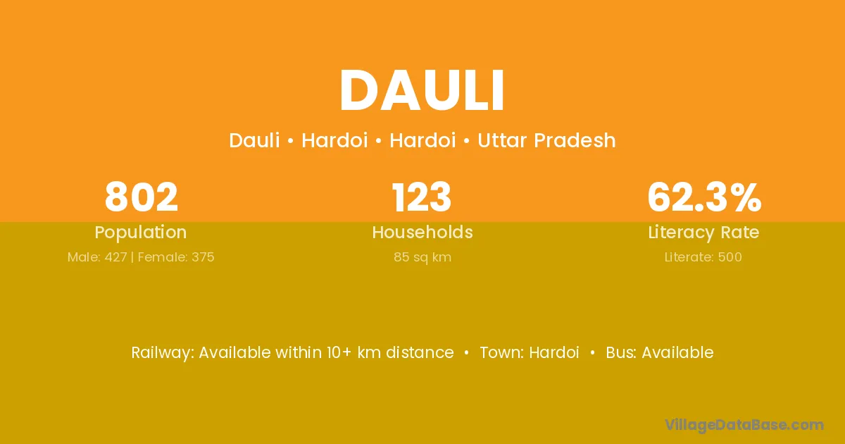 Sitapur (5 km) is the nearest town to Dauli village for major economic activities and is located approximately 5 km away.