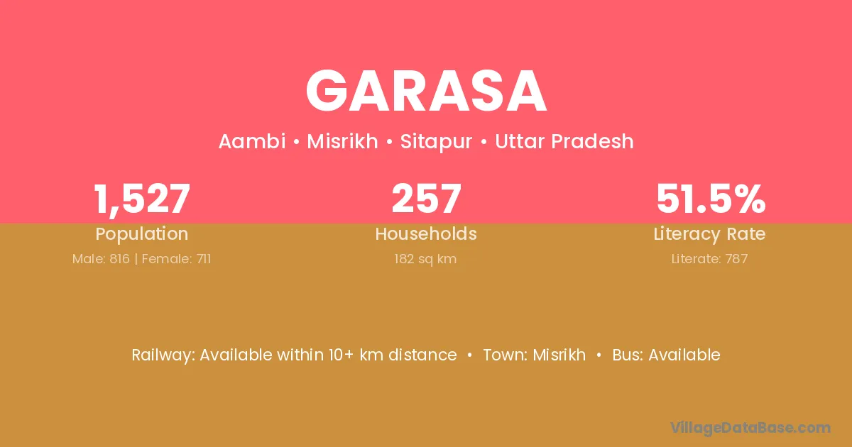 Garasa village has a total population of 1,527 people, of which 816 are males and 711 are females.
