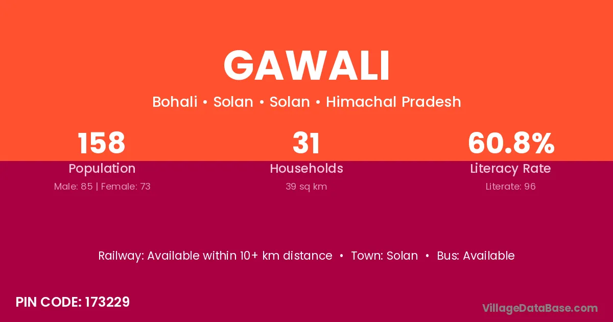 The literacy rate of Gawali village is 50.81%. Male literacy stands at 60.22% and female literacy at 40.57%.