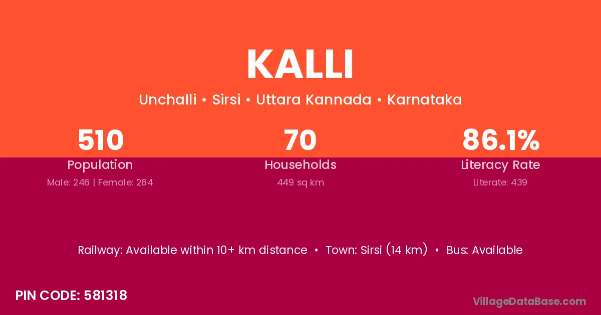 The literacy rate of Kalli village is 60.91%. Male literacy stands at 69.80% and female literacy at 50.68%.