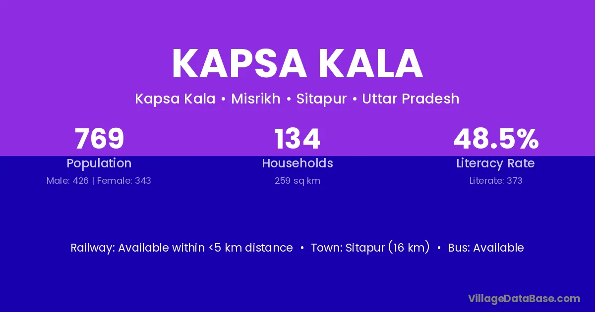 Sitapur (16 km) is the nearest town to Kapsa Kala village for major economic activities and is located approximately 16 km away.