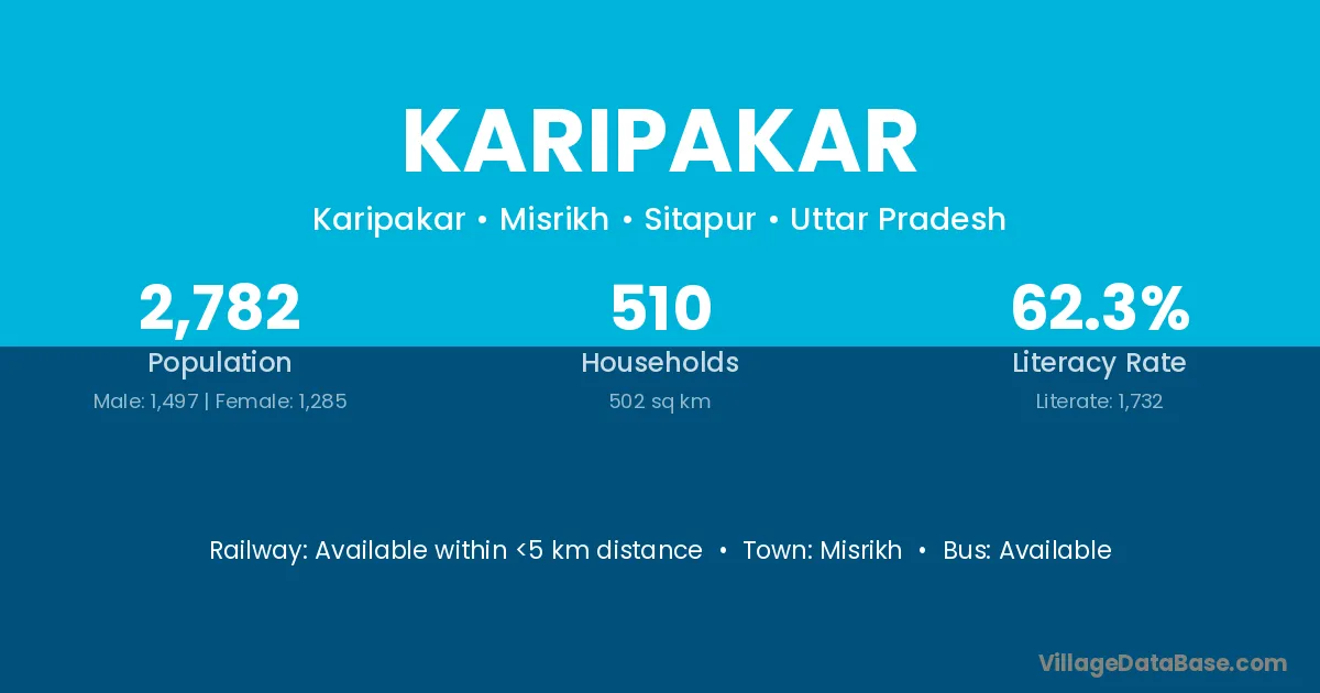 Misrikh is the nearest town to Karipakar village for major economic activities