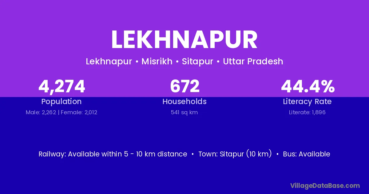 Sitapur (10 km) is the nearest town to Lekhnapur village for major economic activities and is located approximately 10 km away.