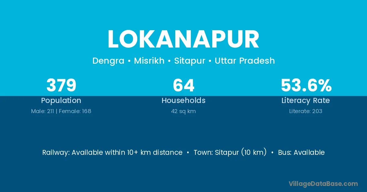Lokanapur village has a total population of 379 people, of which 211 are males and 168 are females.