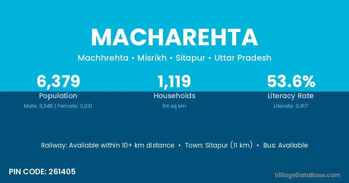 Sitapur (11 km) is the nearest town to Macharehta village for major economic activities and is located approximately 11 km away.