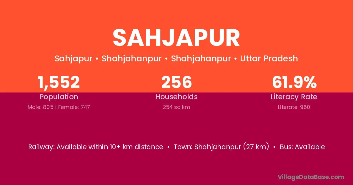 Sitapur (15 km) is the nearest town to Sahjapur village for major economic activities and is located approximately 15 km away.