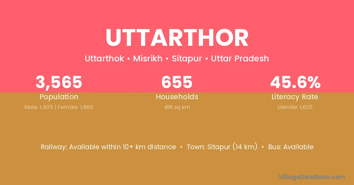 Sitapur (14 km) is the nearest town to Uttarthor village for major economic activities and is located approximately 14 km away.