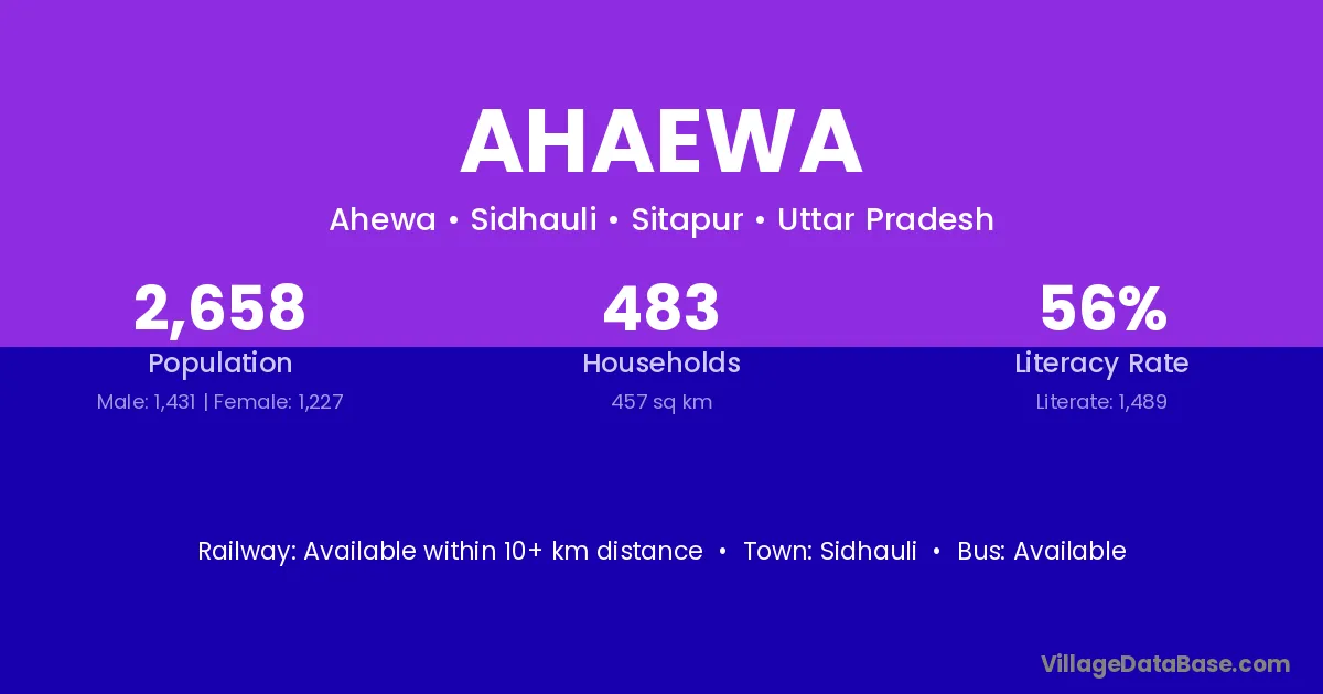 Ahaewa village has a total population of 2,658 people, of which 1,431 are males and 1,227 are females.