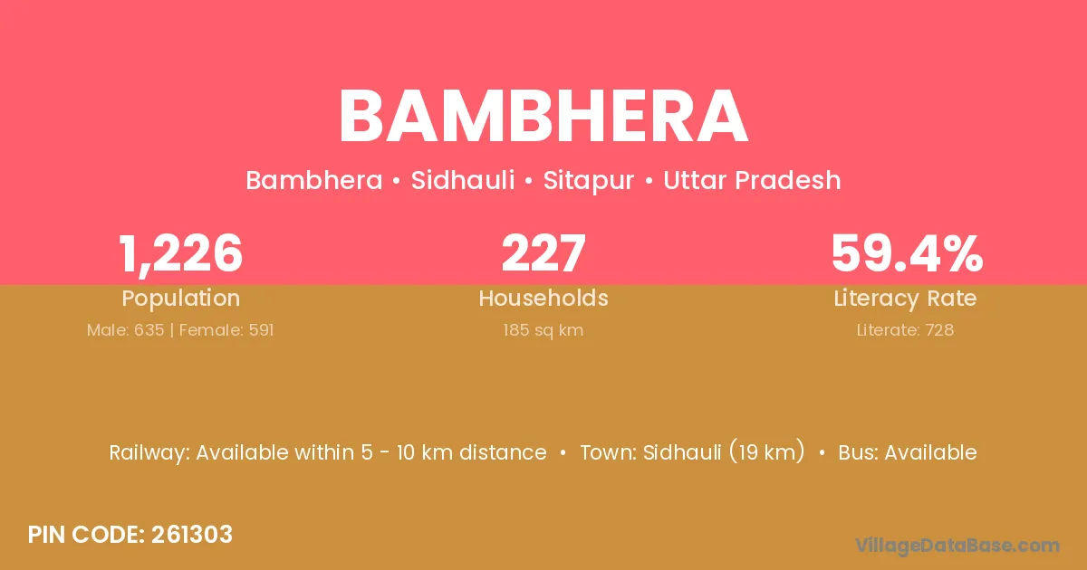 Bambhera village has a total population of 1,226 people, of which 635 are males and 591 are females.