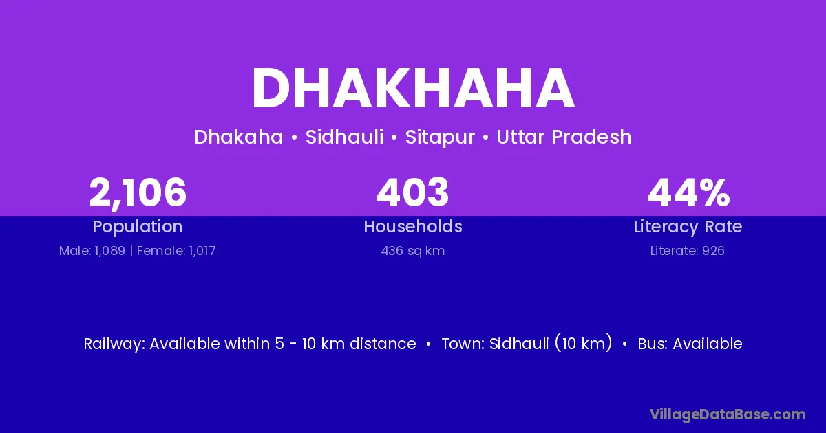 Dhakhaha village has a total population of 2,106 people, of which 1,089 are males and 1,017 are females.