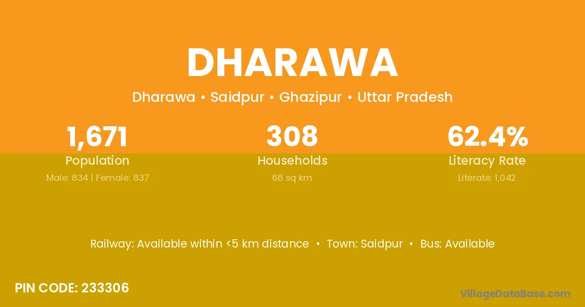 Dharawa village has a total population of 1,960 people, of which 1,033 are males and 927 are females.