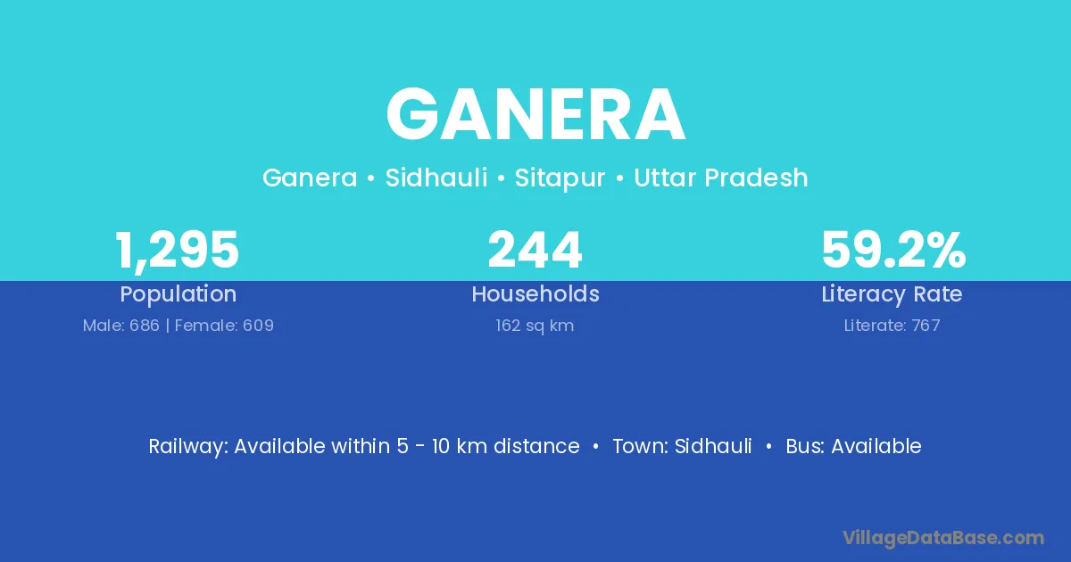 Ganera village has a total population of 1,295 people, of which 686 are males and 609 are females.