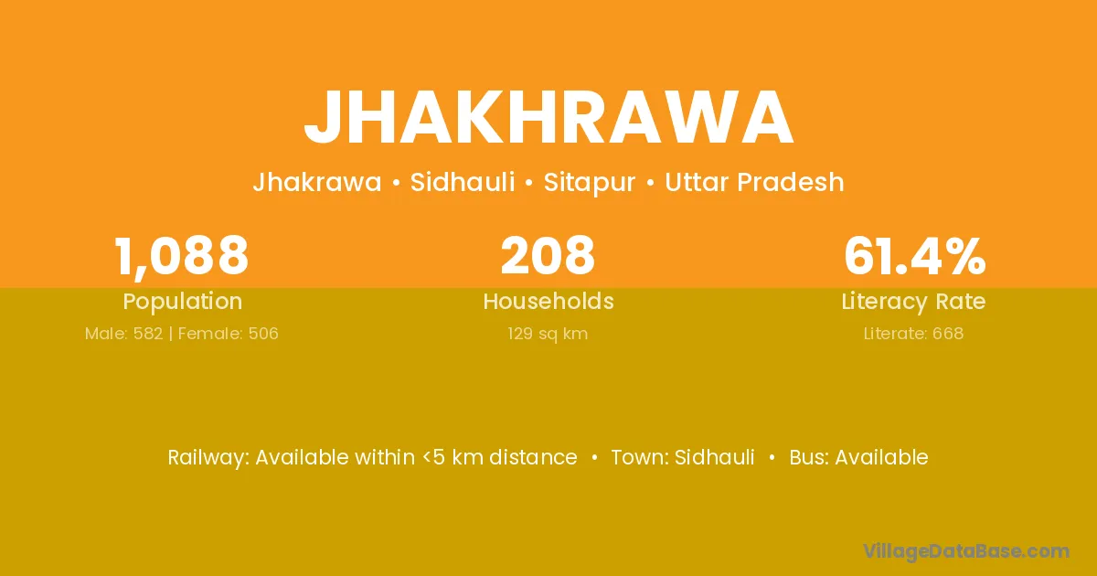 Jhakhrawa village has a total population of 1,088 people, of which 582 are males and 506 are females.