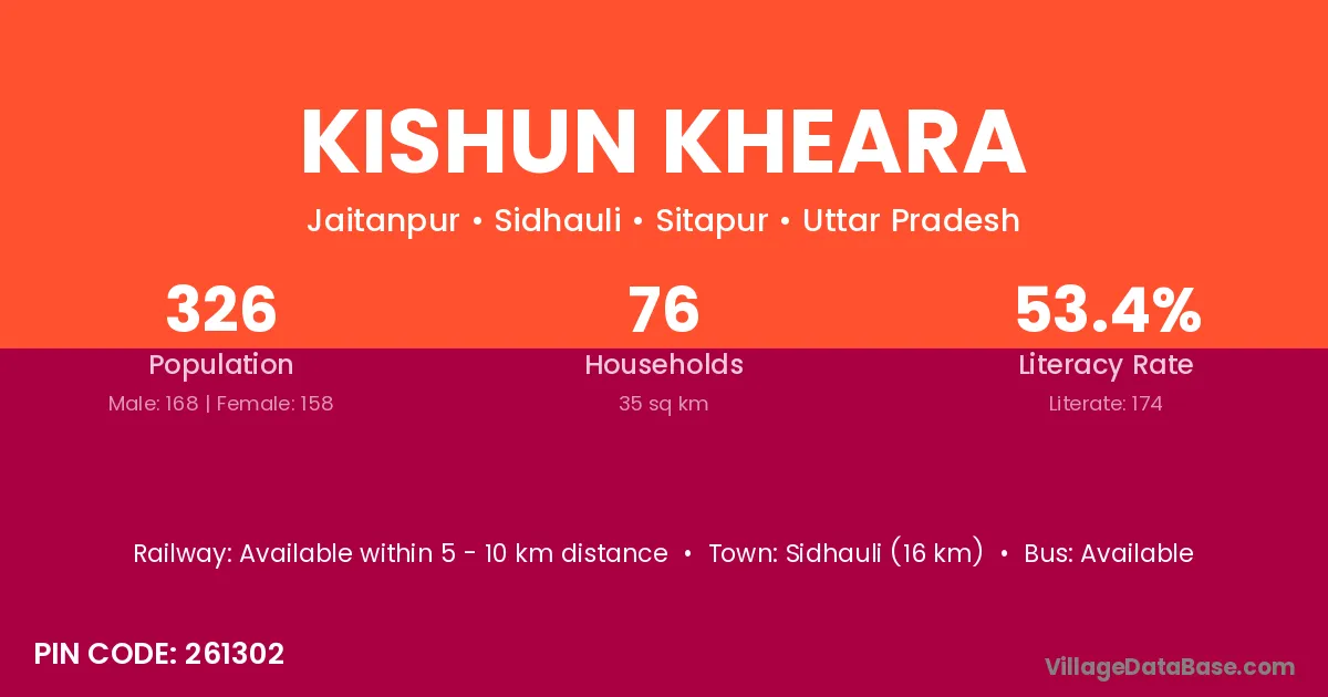 Kishun Kheara village has a total population of 326 people, of which 168 are males and 158 are females.