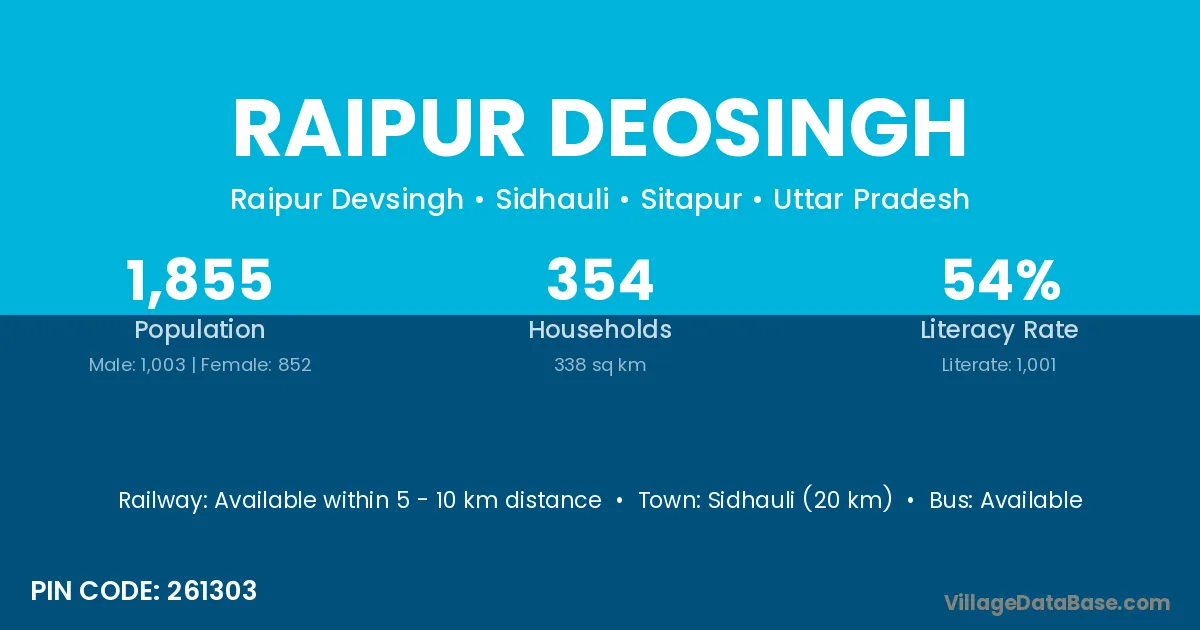 Sidhauli (20 km) is the nearest town to Raipur Deosingh village for major economic activities and is located approximately 20 km away.