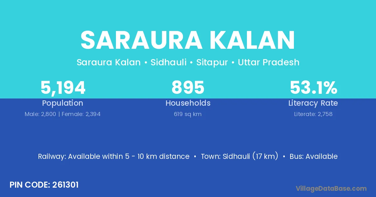 Sidhauli (17 km) is the nearest town to Saraura Kalan village for major economic activities and is located approximately 17 km away.