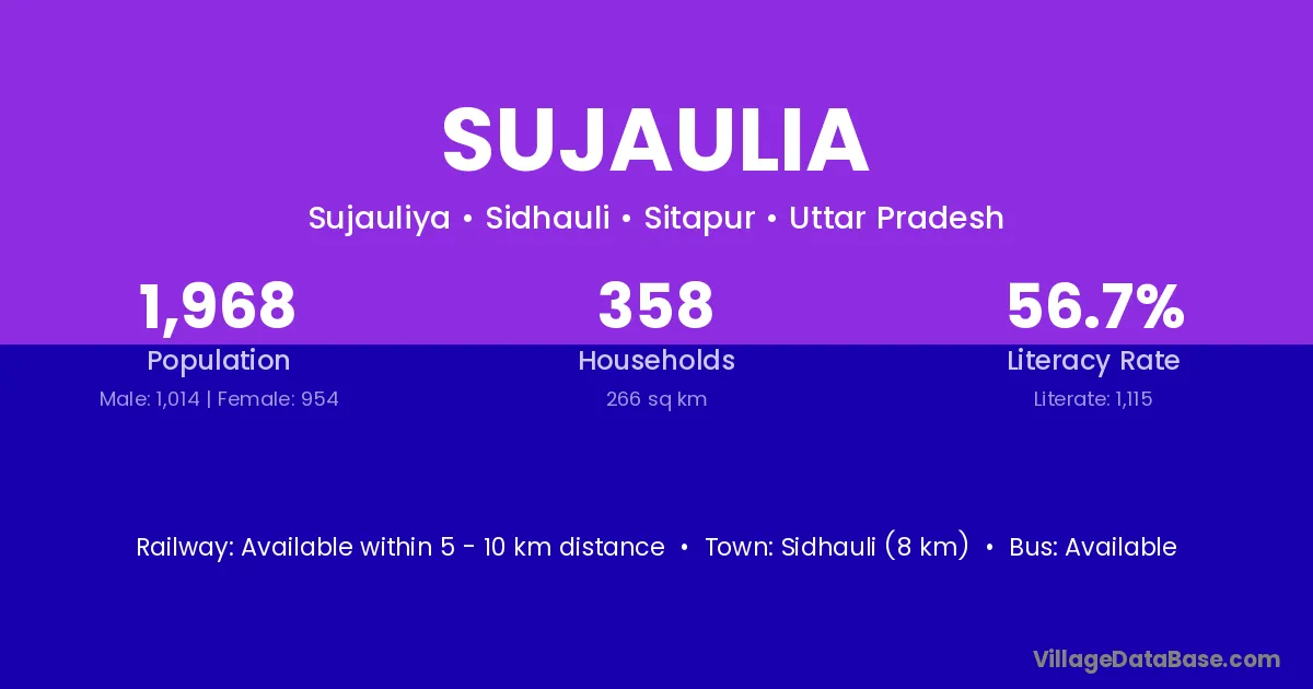 Sidhauli (8 km) is the nearest town to Sujaulia village for major economic activities and is located approximately 8 km away.