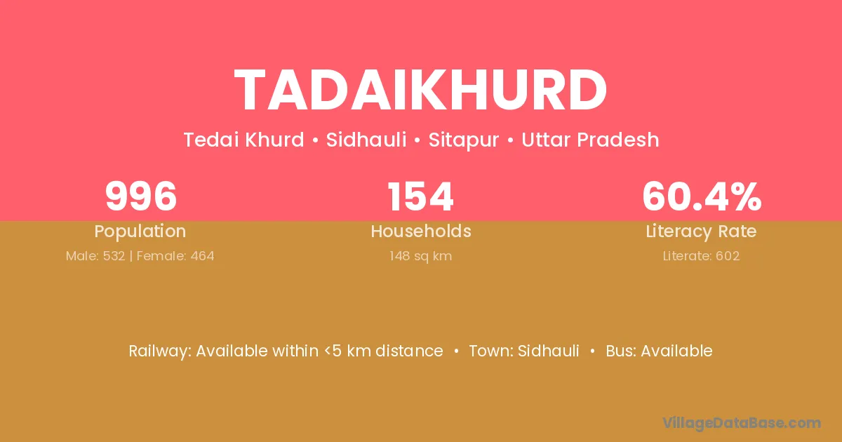 Tadaikhurd village has a total population of 996 people, of which 532 are males and 464 are females.
